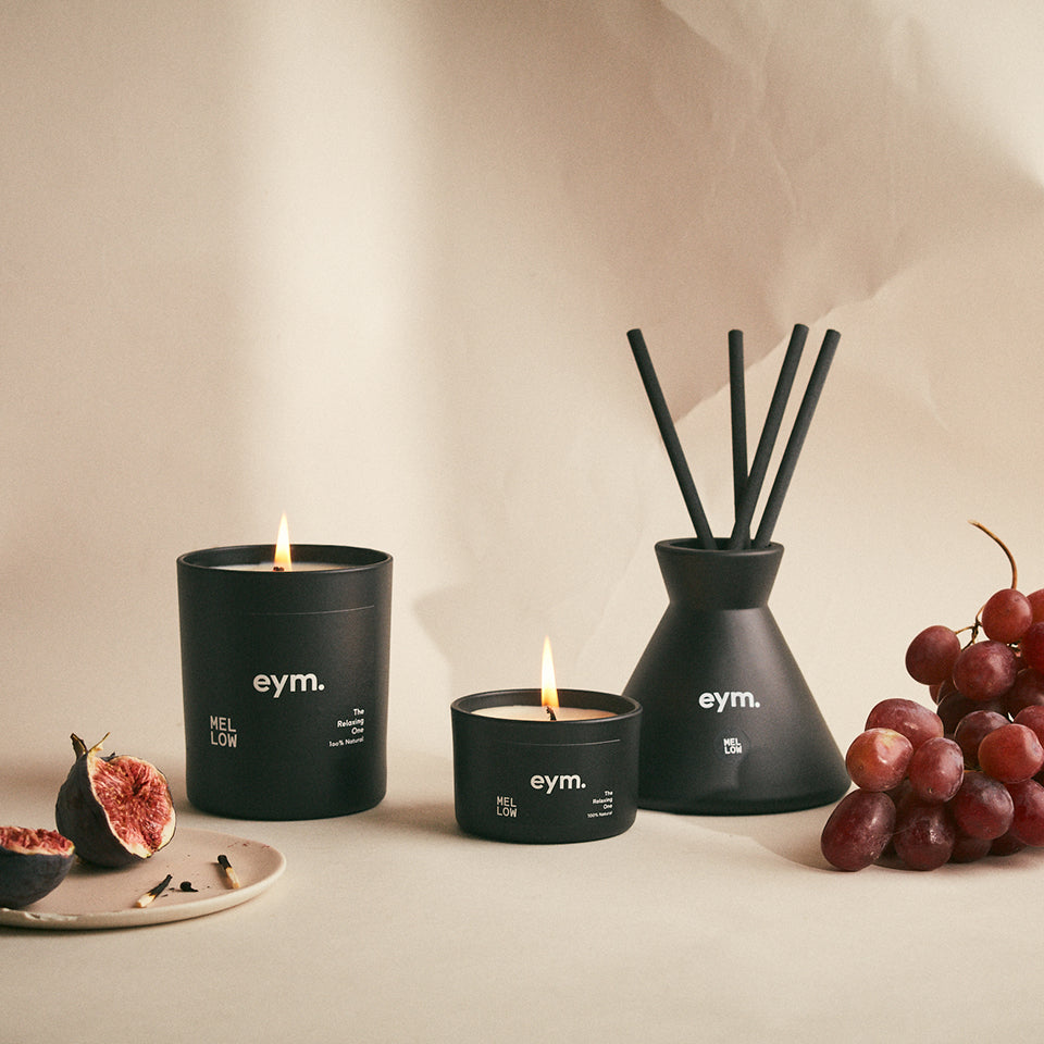 eymの定番アイテム。火をつけると、やさしい精油の香りが空間にふわりと香ります。洗練されたデザインと大きすぎないサイズ感で、インテリアにも馴染みます。